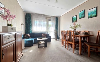 Na sprzedaż oferujemy mieszkanie o powierzchni 60,32 m2, położone w spokojnej i zielonej części osiedla w Pogwizdowie przy ul. Morcinka. Lokal znajduję się w kameralnym niskim bloku, na trzecim piętrze z czterech pięter. Budynek położony jest na skraju, dzięki czemu widok z balkonu rozpościera się na zieleń, a nie na inne sąsiadujące z nim bloki.