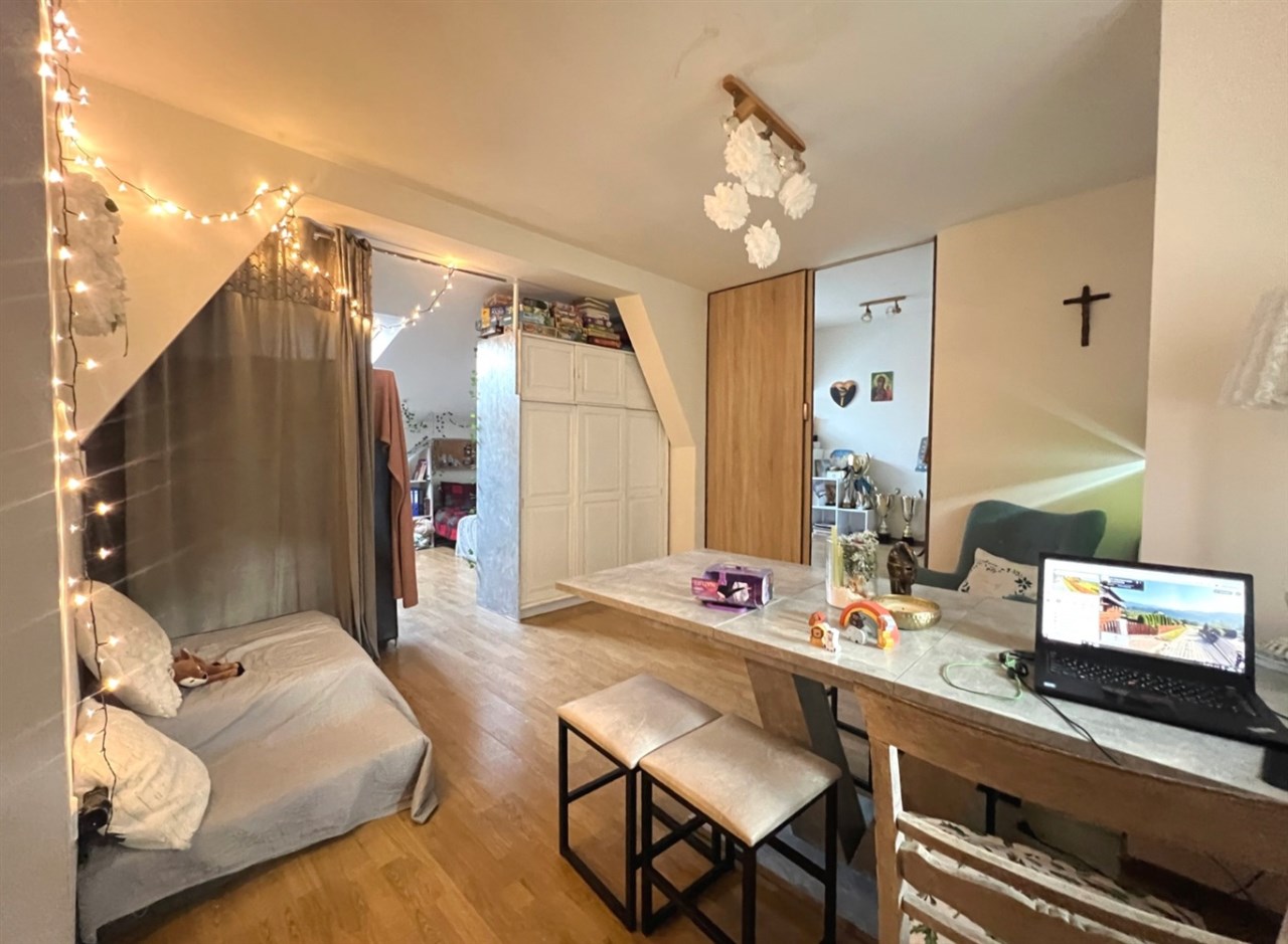 Do wynajęcia przestronny lokal mieszkalny położony na II piętrze (poddasze) w kamienicy w ścisłym centrum Cieszyna, przy ul. Menniczej. Mieszkanie o łącznej powierzchni 107,10 m² składa się z czterech pokoi, w tym jednego podzielonego na dwa mniejsze za pomocą zabudowy meblowej, z możliwością przywrócenia pierwotnego układu, kuchni, łazienki z WC oraz przedpokoju.