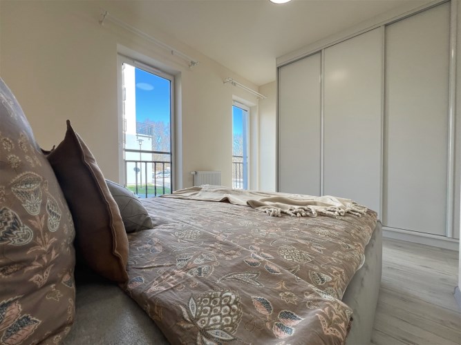 Dwie komfortowe sypialnie, jedna z łóżkiem oraz szafą z drzwiami przesuwanymi. Druga sypialnia pusta do indywidualnego wykończenia.