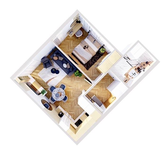 Zapraszamy do zapoznania się z wyjątkową ofertą mieszkania dwupokojowego o powierzchni 43,15 m², składającego się z przestronnego salonu z aneksem kuchennym, sypialni, łazienki oraz przedpokoju.